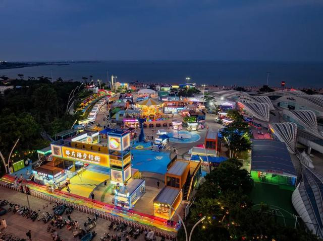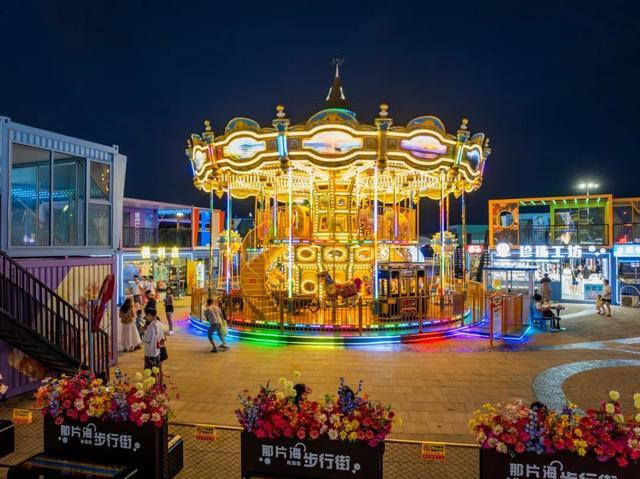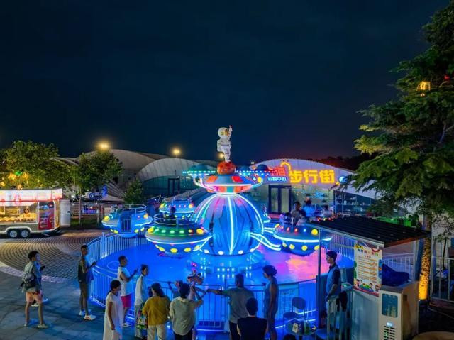 此外,C位豪华旋转木马、浪花碰碰车等游乐设施,让你找回童年的快乐,一站式解锁海滨夜市的浪漫~