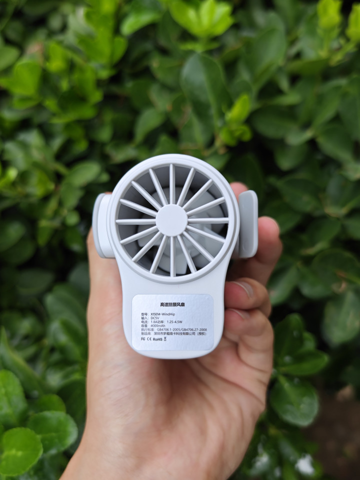 不过也有个小问题,就是风扇挂在腰上,如果穿的是冲锋衣,会有点闷,因为冲锋衣不透气。后来我把冲锋衣的拉链拉开一点,让风吹进去,就好多了。另外,晚上围炉煮茶的时候,风扇离火有点近,外壳会有点热,但不影响使用,只是需要注意一下安全。