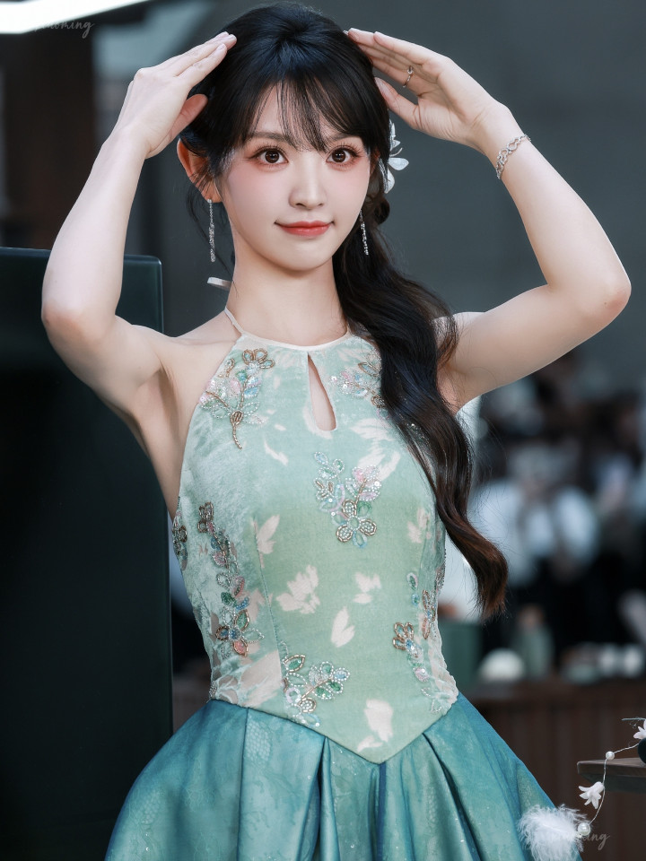 田曦薇青釉裙造型炸屏! 江南烟雨里走出的甜润少女, 灵气满溢封神了