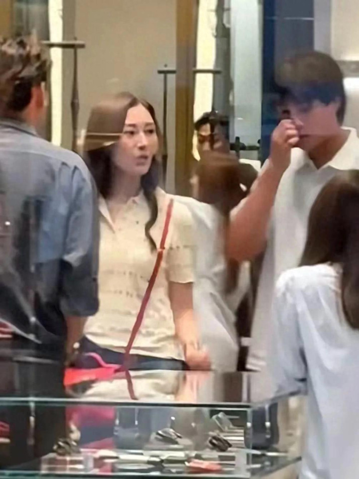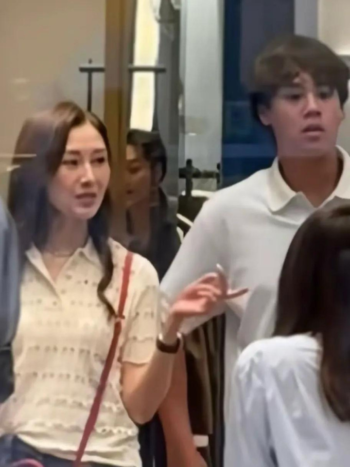 母子俩在奢侈品店里选购商品,儿子应该是陪妈妈去的,真的好体贴呀。有儿子陪伴逛街的李嘉欣心情似乎也不错,跟店员聊天时都是笑容满面,非常有亲和力。