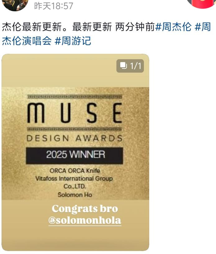 随后他又发了一条动态,庆祝自己好友的得奖,还放出了好友得奖的海报。